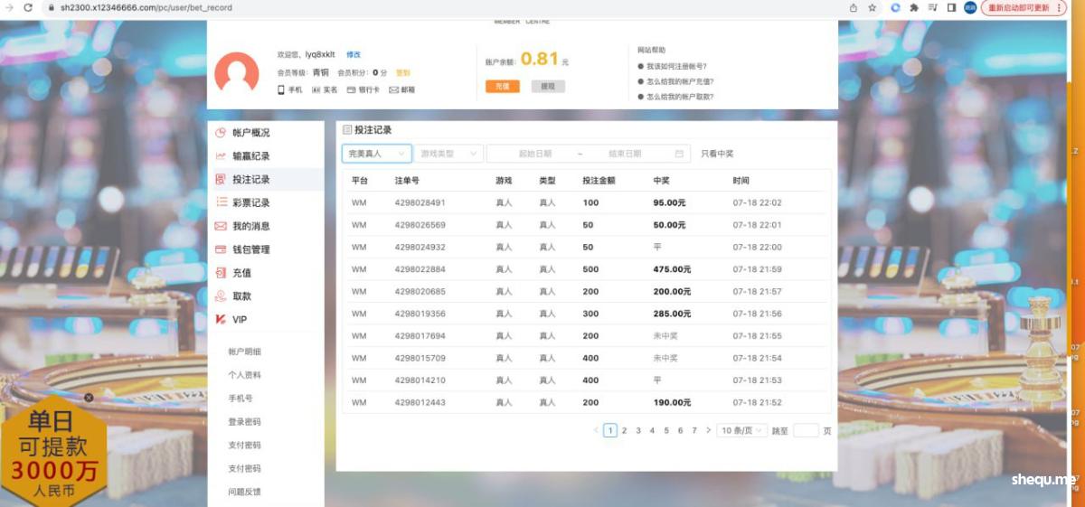 本人7月18号在网站注册到新葡京娱乐,充值两次,第一次输完,第二次充值赢三千来块,提款一直未到帐,询问客服一直是正在审核中,问客服需要配合什么,还是我到底那里违规,还是回答审核中。现在菠菜连一千都要黑吗,通过客服,知道此公司在菲律宾,请大家避坑。这是哪家傻逼公司,做百度推广,我以为起码有点格局,狗庄是真的黑啊